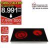 Loại : Bếp đôi âm / nổi 2 vùng nấu hồng ngoại (Có mở rộng đường kính nấu ở mâm nhiệt mặt bếp 1)
