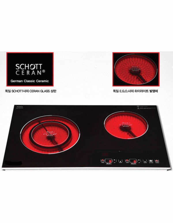 - Mặt bếp điện hồng ngoại bằng kính SCHOTT CERAN chịu nhiệt cao, sáng bóng, bền bỉ.
