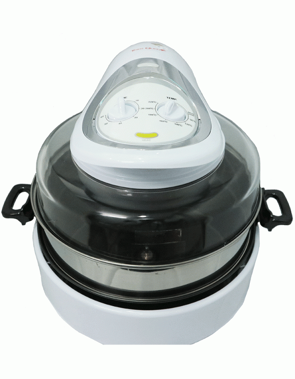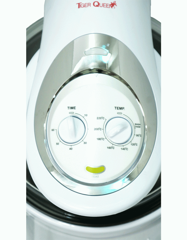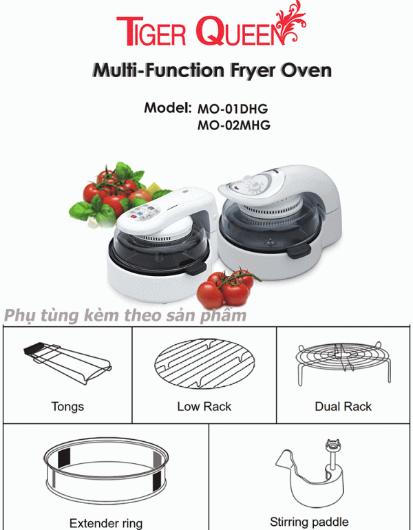 Lò nướng thủy tinh đa năng đèn Halogen hiệu Tiger Queen, nướng đối lưu kép từ 65-220ºC, đồng hồ cài đặt 60 phút, có 7 công thức món ăn, nắp thủy tinh Đài Loan, màu trắng. Có nhiều chức năng : Quay, nướng, nướng bánh, hấp, khử nước, xả đông, chiên chân không, xào….