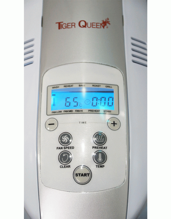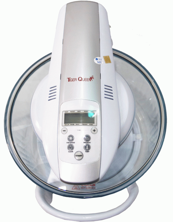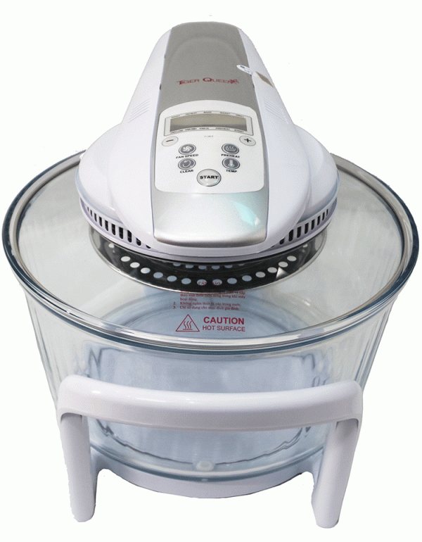 Lò nướng điện tử thủy tinh hiệu Tiger Queen nướng đối lưu từ 65-260ºC, màn hình LCD, đồng hồ cài đặt 9 giờ 59 phút, quạt 3 tốc độ, chậu thủy tinh Pháp, màu trắng. Có nhiều chức năng : Quay, nướng, nướng bánh, hấp, khử nước, xả đông, chiên chân không….