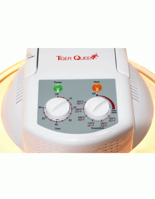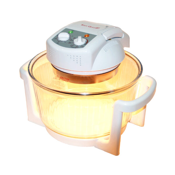 Lò nướng thủy tinh đèn Halogen hiệu Tiger Queen nướng đối lưu từ 60 – 250ºC, đồng hồ cài đặt 60 phút, quạt 1 tốc độ, có chế độ tự vệ sinh của lò nướng, chậu thủy tinh Pháp, màu trắng. Có nhiều chức năng : Quay, nướng, nướng bánh, hấp, khử nước, xả đông, chiên chân không….