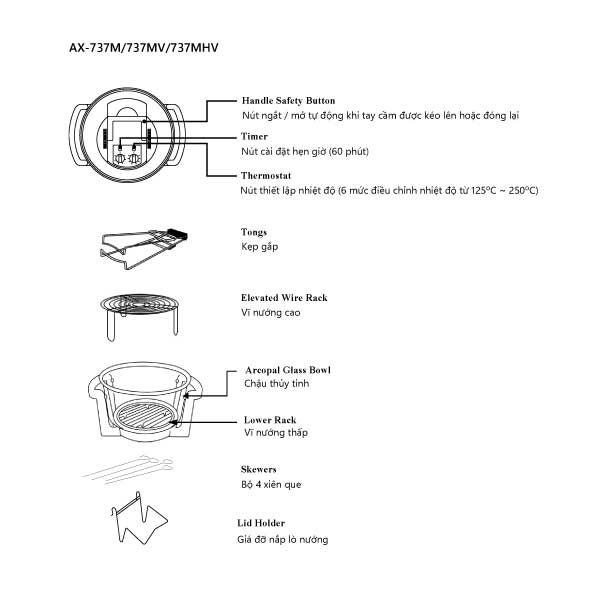 LÒ NƯỚNG THỦY TINH TIGER QUEEN AX-737M