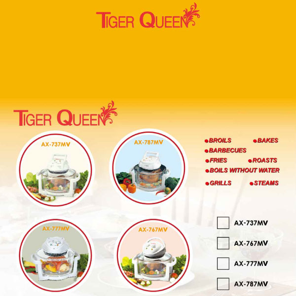 Nhằm đáp ứng sở thích ăn các món nướng mà không chứa nhiều dầu mỡ và an toàn cho người sử dụng thì Thương hiệu Tiger Queen đến từ Hàn Quốc chuyên sản xuất các sản phẩm nhà bếp, gia dụng nói chung đã cho ra đời những mẫu lò nướng thủy tinh hiệu Tiger Queen cao cấp tại thị trường Việt Nam. Lò nướng thủy tinh Tiger Queen AX-737M được sản xuất từ linh kiện cao cấp có độ bền cao và thủy tinh chịu nhiệt không chứa chất độc hại, thiết kế nhỏ gọn, sang trọng, hiện đại và an toàn luôn luôn có mặt trong mọi không gian nhà bếp. Hơn thế nữa, với phương pháp nướng đối lưu thế hệ mới “EZ Cook” làm chín thực phẩm nhanh, dòn mà không bị khét, không tạo khói và không cần sử dụng nhiều dầu mỡ trong quá trình nướng là một sự lựa chọn lí tưởng giúp bạn chế biến và thưởng thức những món nướng yêu thích cho gia đình mà vẫn giữ nguyên hương vị.