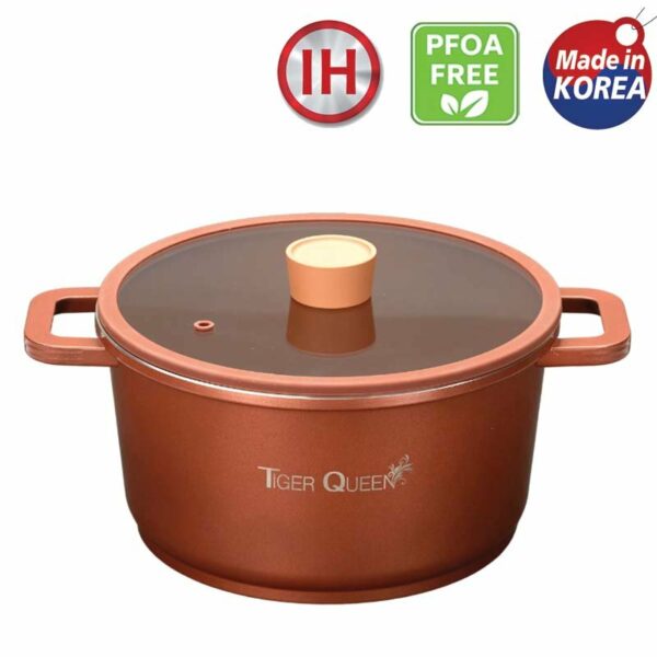 Được nhiều người tiêu dùng yêu mến và lựa chọn, thương hiệu Tiger Queen đến từ Hàn Quốc chuyên sản xuất các sản phẩm nhà bếp, gia dụng nói chung và Nồi lẩu nhà bếp Tiger Queen nói riêng là một sự lựa chọn lí tưởng giúp bạn chế biến và thưởng thức các món ăn yêu thích cho gia đình mà vẫn giữ nguyên hương vị cũng như an toàn cho sức khỏe. Nồi hầm nhà bếp Ceramic Tiger Queen CWCB-24CH được làm bằng 3 lớp kim loại phủ 2 lớp gốm Ceramic dầy 2.5mm chống dính và 9 lớp đáy dày 4.0mm với công nghệ tráng men hiện đại nhất “Hard Anodized” không tróc men, chống gỉ sét, chống ăn mòn, độ bền cao với thiết kế sang trọng, an toàn và màu sắc trẻ trung luôn luôn có mặt trong mọi không gian nhà bếp.