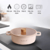 Toàn bộ cấu trúc nồi làm bằng chất liệu nhôm tinh khiết 3 lớp được phủ 2 lớp gốm Ceramic dầy 2.5mm và 9 lớp đáy dày 4.0mm cực kỳ bền và không gỉ sét, Nồi lẩu Ceramic từ tính cao cấp hiệu Tiger Queen Series Lima CWCP-24CL tối đa hóa hiệu suất dẫn và giữ nhiệt làm thức ăn chín đều cực nhanh mà thức ăn không bị cháy khét, tiết kiệm thời gian cũng như chi phí nhiên liệu nấu và giảm sự phá hủy chất dinh dưỡng trong quá trình nấu ăn một cách hiệu quả đặc biệt là các món ăn hầm và luộc.