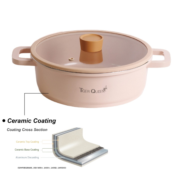 Được nhiều người tiêu dùng yêu mến và lựa chọn, thương hiệu Tiger Queen đến từ Hàn Quốc chuyên sản xuất các sản phẩm nhà bếp, gia dụng nói chung và nồi nhà bếp Tiger Queen nói riêng là một sự lựa chọn lí tưởng giúp bạn chế biến và thưởng thức các món ăn yêu thích cho gia đình mà vẫn giữ nguyên hương vị cũng như an toàn cho sức khỏe. Nồi quánh Ceramic Tiger Queen CWCP-18B được làm bằng 3 lớp kim loại phủ 2 lớp gốm Ceramic dầy 2.5mm chống dính và 9 lớp đáy dày 3.5mm với công nghệ tráng men hiện đại nhất “Hard Anodized” không tróc men, chống gỉ sét, chống ăn mòn, độ bền cao với thiết kế sang trọng, an toàn và màu sắc trẻ trung luôn luôn có mặt trong mọi không gian nhà bếp.