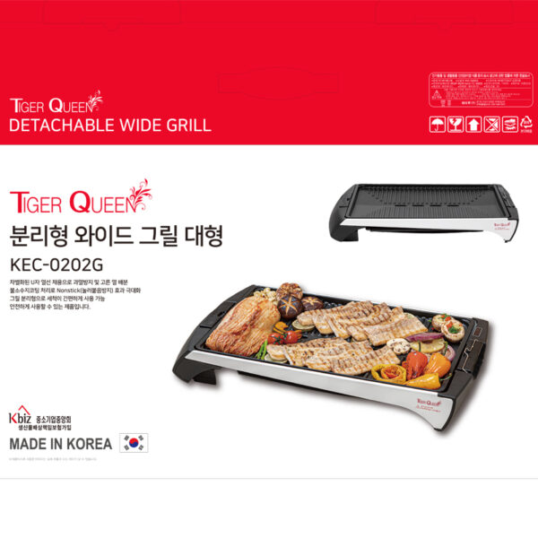 Vĩ nướng điện Tiger Queen KEC-0202G với các bộ phận tách rời được và thiết kế rãnh thoát dầu trên bề mặt vĩ nướng cho lượng dầu mỡ dư chảy xuống vĩ đựng dầu giúp thức ăn không chứa nhiều dầu mỡ mà còn tiện trong việc vệ sinh sản phẩm sau mỗi lần sử dụng.