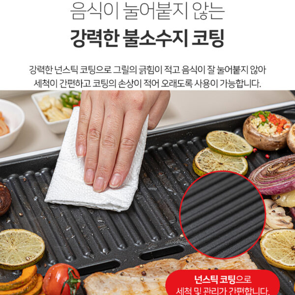 Công nghệ phủ lớp dung nạp muối giúp bạn nướng mà không cần dùng nhiều dầu mỡ cũng như giúp loại bỏ nhu cầu nấu ăn nhiều muối của Hàn Quốc.