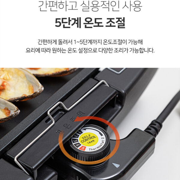 5 mức điều chỉnh nhiệt độ từ 1 đến 5 (tương ứng từ 65ºC – 250ºC) phù hợp với yêu cầu nướng, sốt của nhiều món ăn bằng bộ điều chỉnh nhiệt độ quay số đơn giản.
